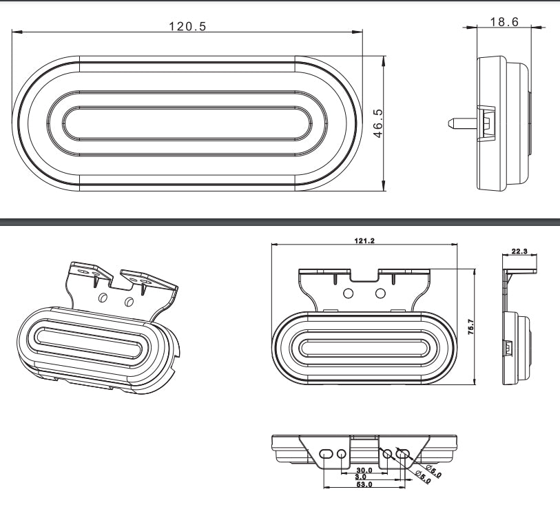 Diese hochwertige LED-Positionsleuchte mit abgerundetem, transparentem Gehäuse eignet sich ideal für den Einsatz an Lkw, Nutzfahrzeugen und Anhängern. Das schlanke, kompakte Design (121 × 47 × 19 mm) ermöglicht eine vielseitige Montage auch an engen Stellen.