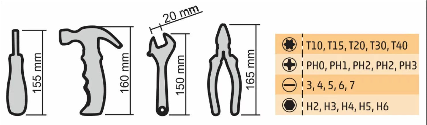 • Durable & Portable Storage: All tools are neatly organized in a sturdy plastic carrying case (280 x 45 x 185 mm, 1.2kg) with a transparent lid, so you can instantly see and access what you need. Compact and lightweight, it fits easily in your car trunk, cabinet, or any shelf.