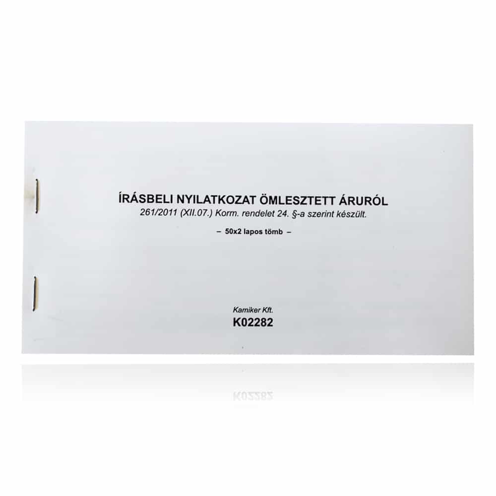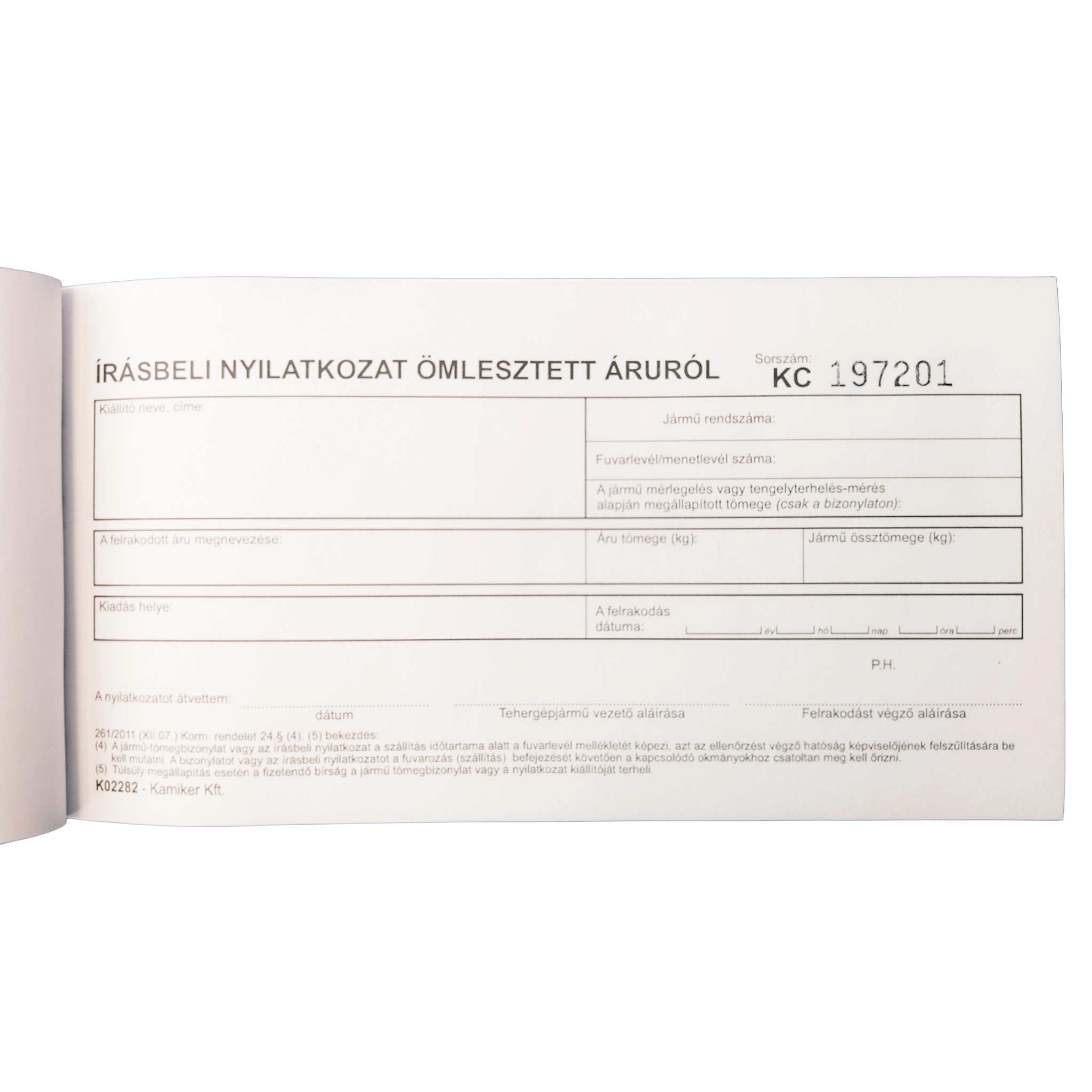 Written declaration form tailored for bulk goods transport—fully compliant with shipping regulations for legal and inspection purposes. This form is created in accordance with Government Decree 261/2011 (XII.07.), Section 24, and includes all required data for transportation and official checks.