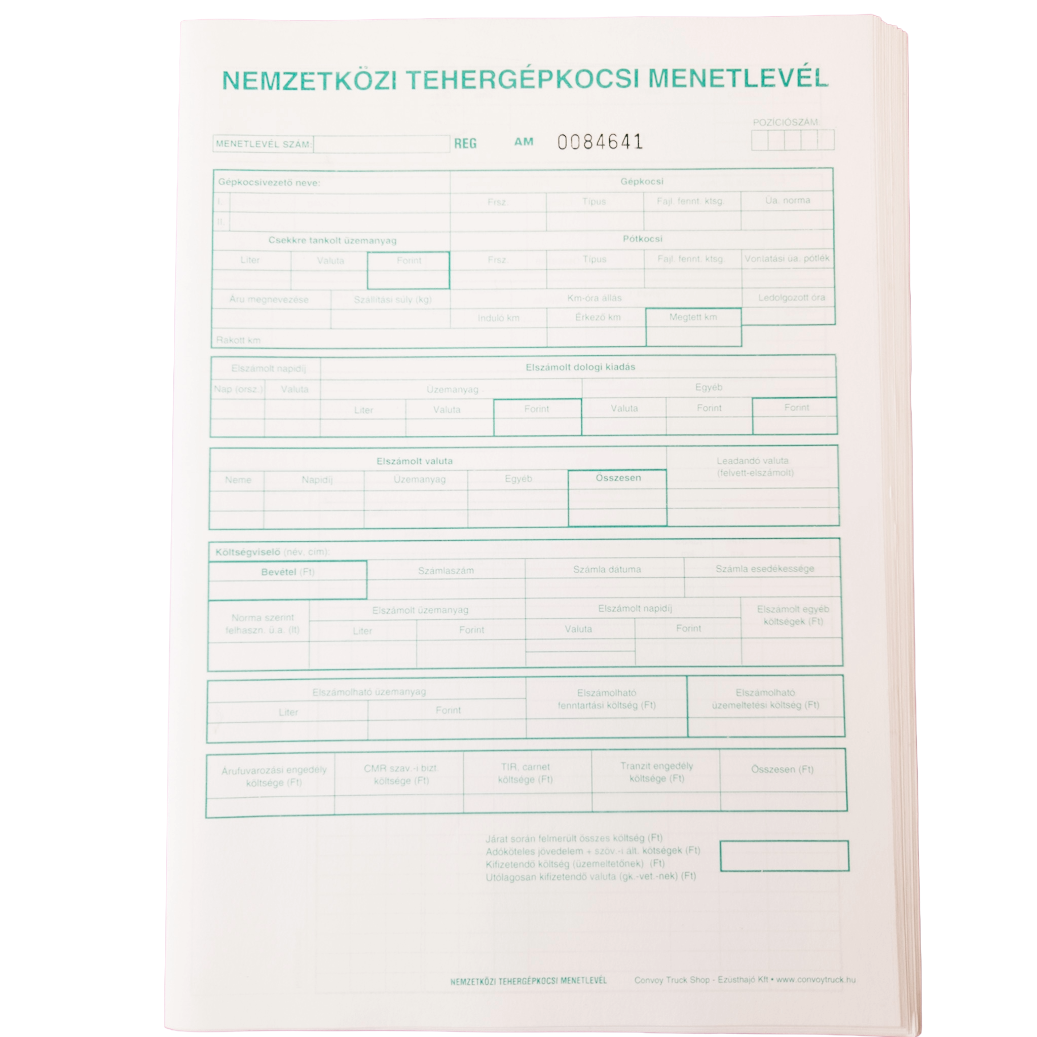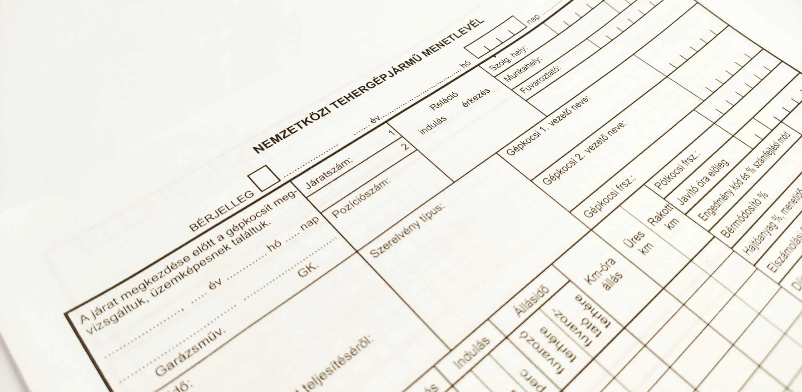 • Obsahuje pole pro zápis ujeté vzdálenosti (prázdné i naložené kilometry), míst odjezdu a příjezdu, přestávek, tankování nebo údržby.